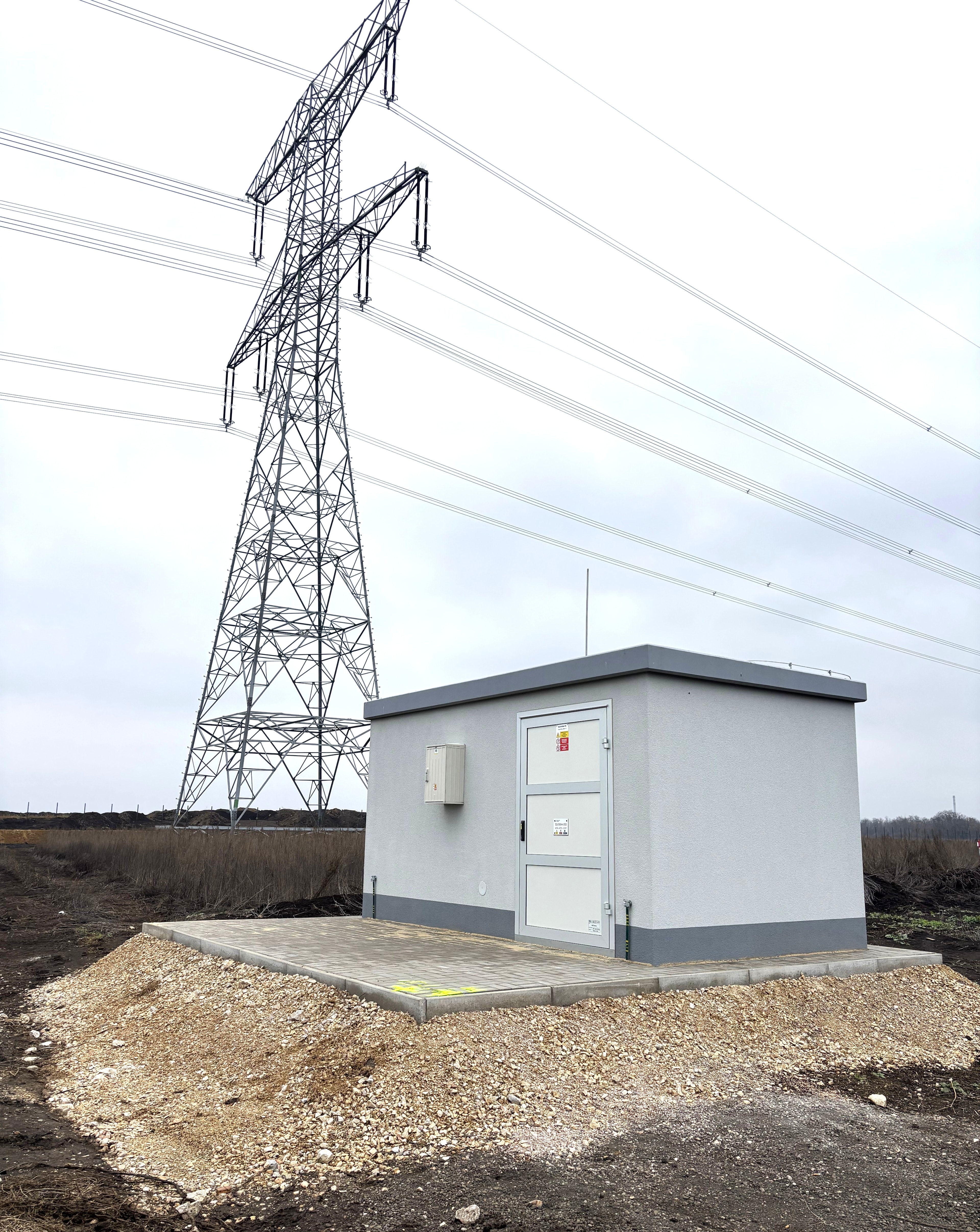 Súčasťou stavby je aj kiosková spínacia stanica, ktorá predstavuje kompaktný technologický celok určený na transformáciu elektrickej energie z vysokého na nízke napätie (VN/NN). Vysokonapäťové vedenie pozostáva z troch jednožilových káblov s prierezom 240 mm², v celkovej dĺžke 1,3 km. Spínacia stanica na konci trasy zároveň slúži ako riadiaci a distribučný bod elektrickej energie s kapacitou 5 MW.